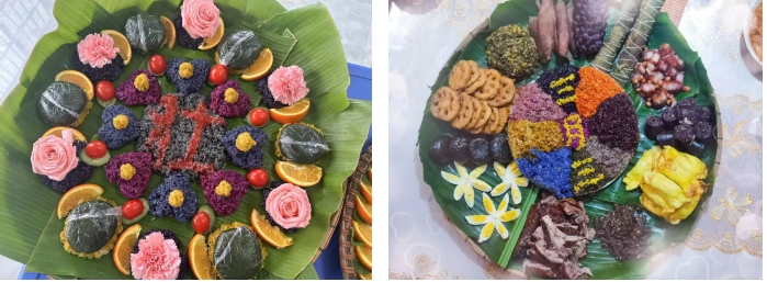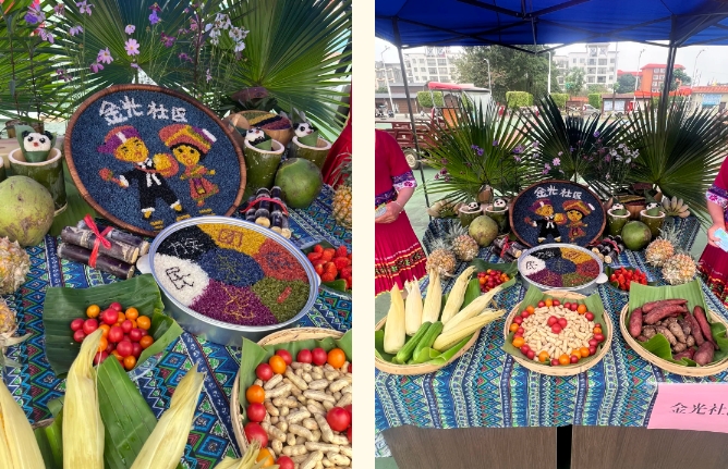 大家用簸箕拼盤將層次分明、色彩斑斕的各項(xiàng)珍饈有規(guī)律的擺放到簸箕中,從五谷雜糧的馥郁到山珍海味的鮮美,再到田園時(shí)蔬的清香,這些菜肴不僅口感獨(dú)特,而且蘊(yùn)含著豐富的民族文化內(nèi)涵,體現(xiàn)了人們對(duì)美好生活的向往和追求。圖為集團(tuán)公司職工前往社區(qū)參加活動(dòng)拍攝的特色美食照片。