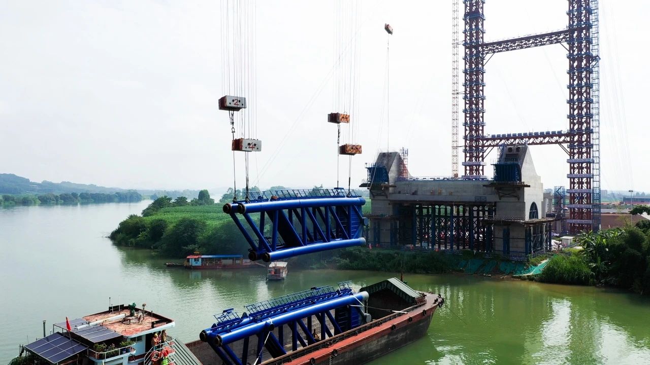 8月8日,南寧南過(guò)境線(吳圩機(jī)場(chǎng)至隆安延長(zhǎng)線段)公路上正右江特大橋首節(jié)拱肋順利完成安裝,標(biāo)志著這座項(xiàng)目關(guān)鍵控制性工程正式進(jìn)入拱肋安裝的重要階段。